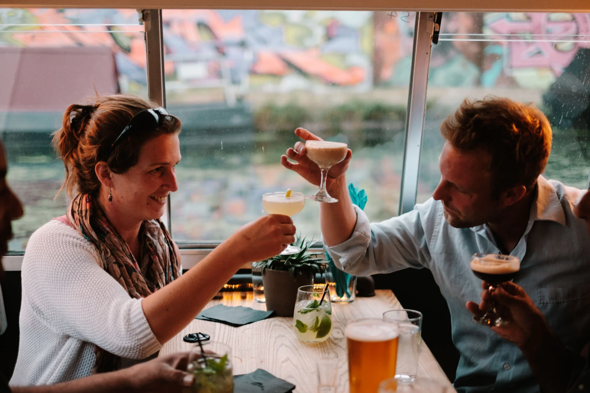 The boat, moored by Crate Brewery in Hackney Wick, catered to bar crawling East Londoners on one side and thirsty kayakers on the other and on Sunday evening provided us with a stream of cocktails and pizza for photography purposes only.
